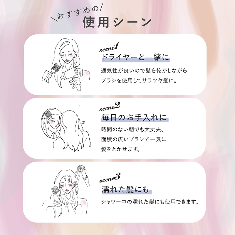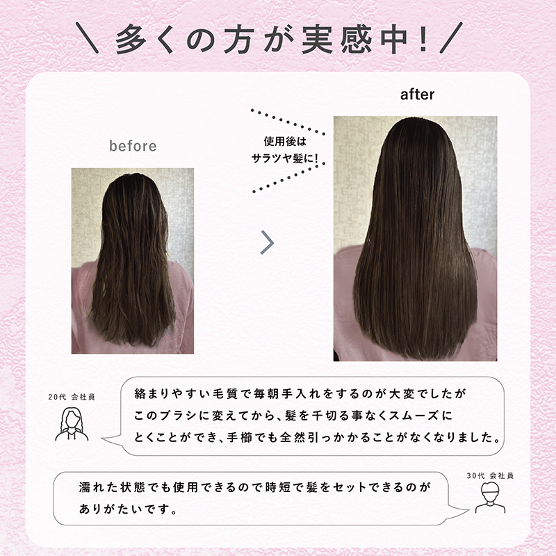 毎日のブラッシングはもちろん、ドライヤーと一緒に使用すれば、ふんわりとした仕上がりに。