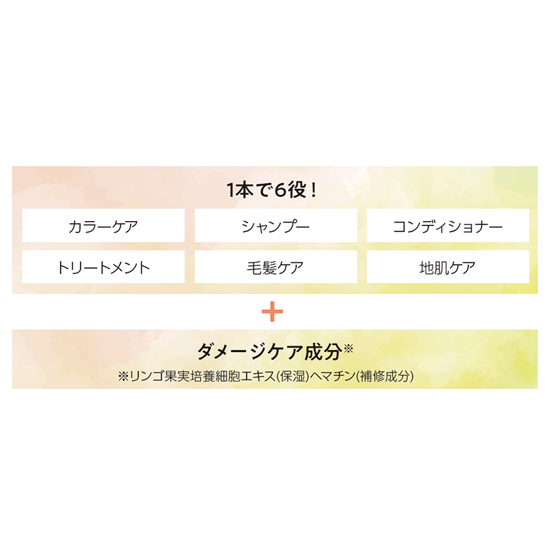水、オレフィン(C14-16)スルホン酸Na、コカミドプロピルベタイン、(C12、13)パレスー3硫酸Na、グリセリン、ヘマチン、※リンゴ果実培養細胞エキス、ツバキ種子油、オタネニンジン根エキス、加水分解シルク、加水分解コラーゲン、ヒアルロン酸Na、レチシン、BG、エタノール、エチドロン酸4Na、エチルパラベン、キタンサンガム、クエン酸、コカミドメチルMEA、フェノキシエタノール、ブチルパラベン、ポリクオタニウムー10、メチルパラベン、ラウラミドDEA、安息香酸Na、香料、HC黄4、HC青2、塩基性青99、塩基性茶16