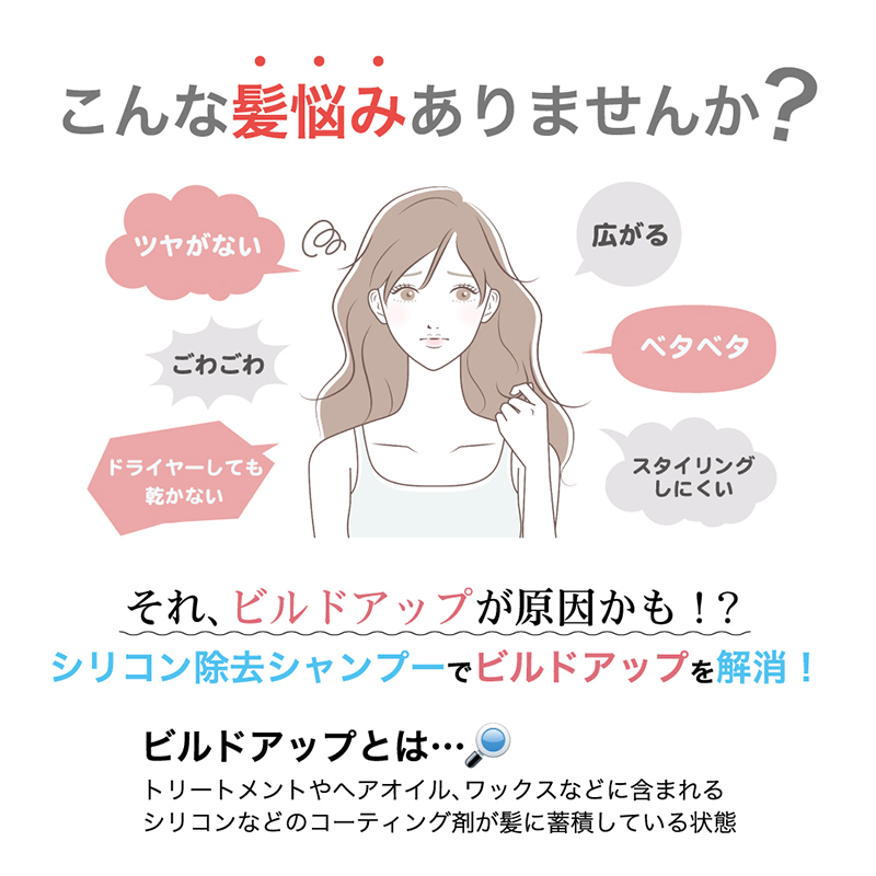 通常のシャンプーでは落ちにくいシリコンの被膜や皮脂汚れをキレイに落とします。