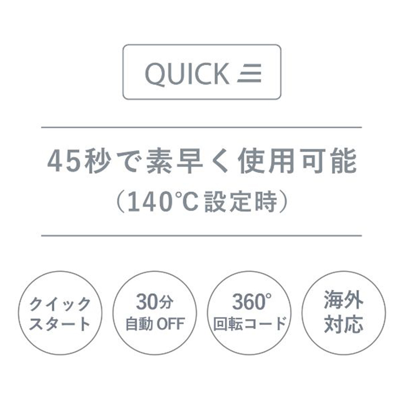 表面にフッ素樹脂(ポリテトラフルオロエチレン)を採用した新開発プレートが髪の水分蒸発と摩擦ダメージを最小限に抑制。