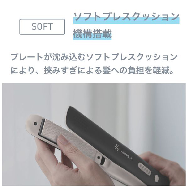 プレートが沈み込むソフトプレスクッションにより、髪への負担を軽減します。