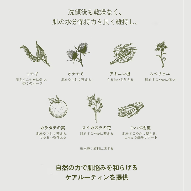オリーブオイルとシアバターが肌に潤いを与え、FULIM独自のハーブレシピで肌悩みを和らげます。ふんわりとしたきめ細やかな泡で顔にも体にも使えます。