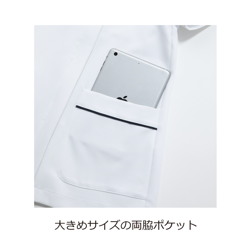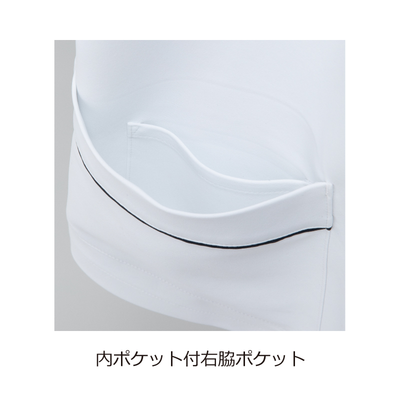 前ファスナー、左胸ポケット、両脇ポケット(右内ポケット付)、右脇ループ