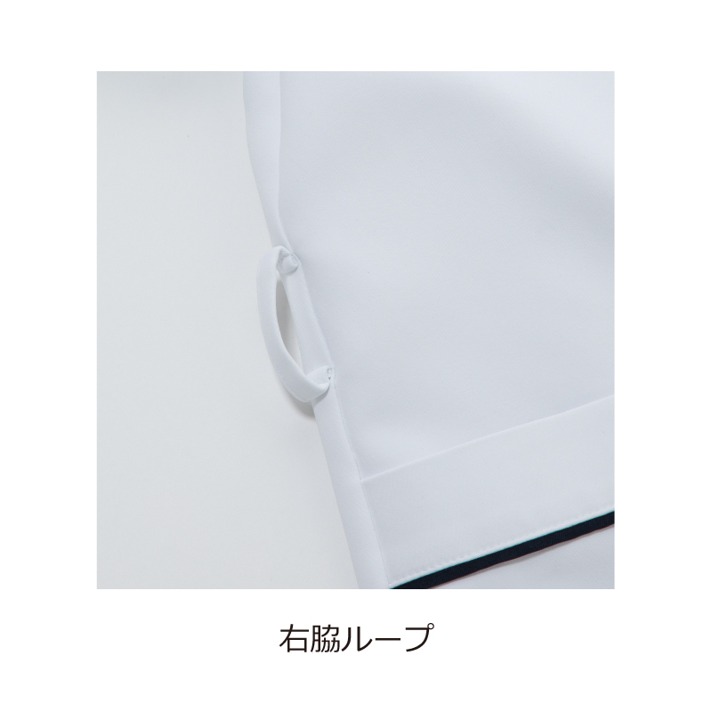 前ファスナー、左胸ポケット、両脇ポケット(右内ポケット付)、右脇ループ