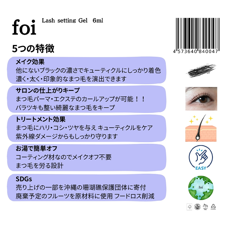 コーティング材なのでメイクオフ不要。まつ毛を労る設計。