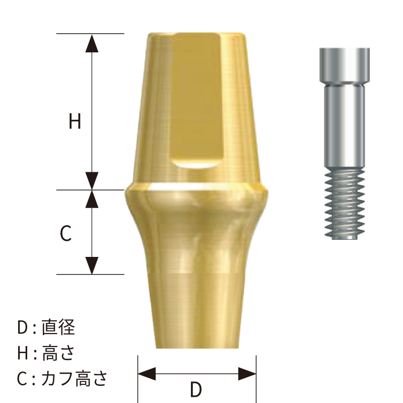 ARセメンテーションアバットメント(NonーHex)[BIOTEM] (R)レギュラー/(W)ワイド(D)φ4.5mm (H)5.5mm (C)1.0mm