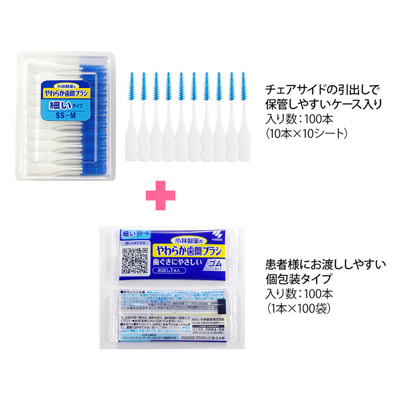 やわらか歯間ブラシ I字型 SS-M 院内指導用+個包装 各100本セット