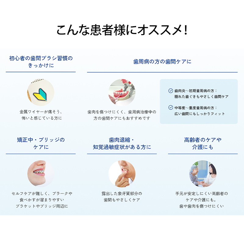 やわらかい使用感のゴムタイプで歯ぐきを気持ちよくマッサージ狭い歯間にもスムーズに挿入できる