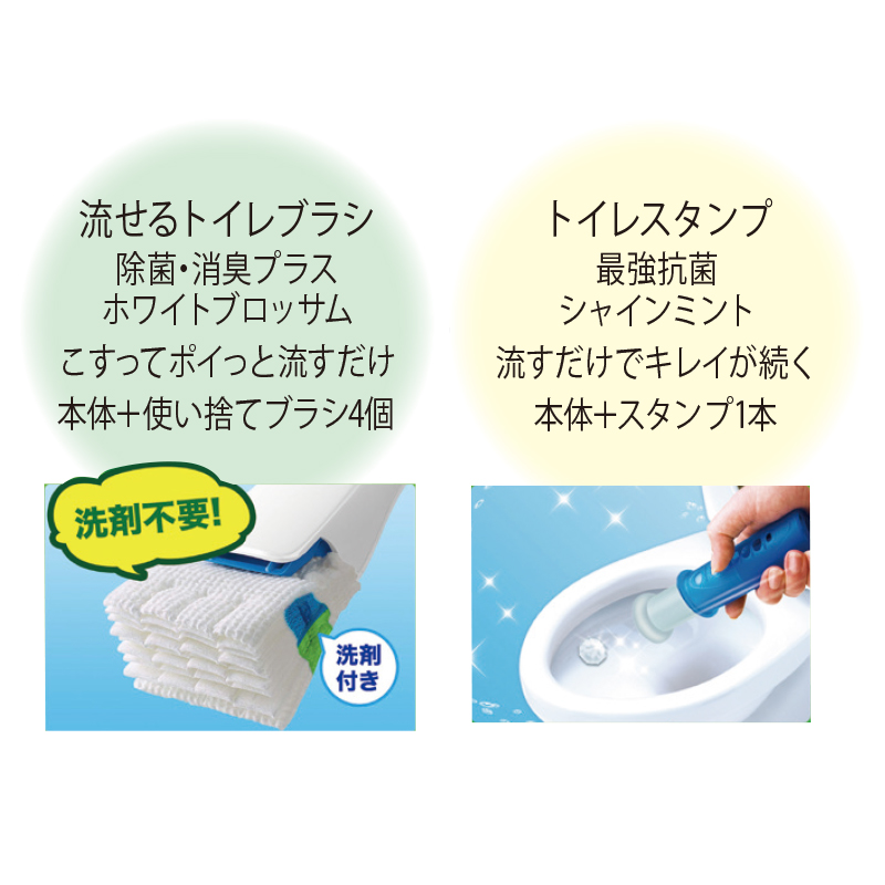 手軽に使える人気の「流せるトイレブラシ」と「トイレスタンプ」最強抗菌タイプのお得なセット