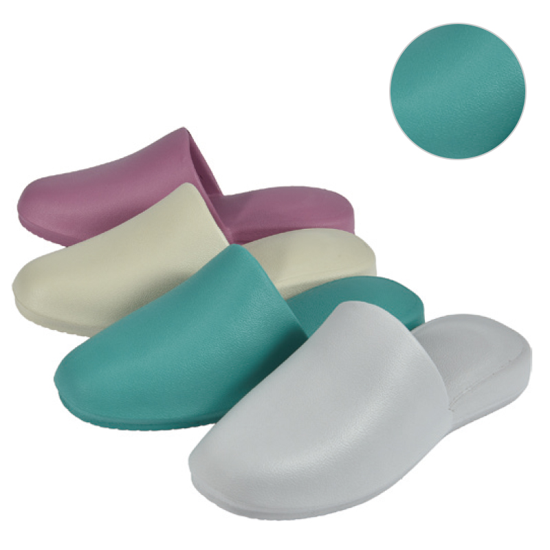軽くて弾力のある、縫い目無しの一体成型スリッパ(大人用)クッション性の高い厚めのかかと(約3.5cm)が特長