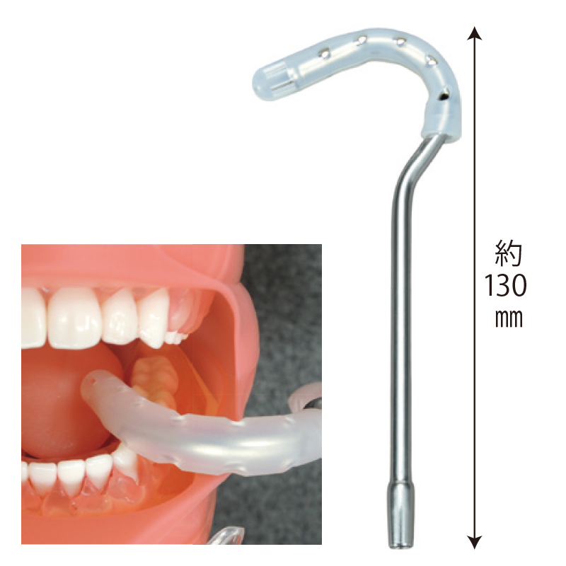 舌や頬粘膜の圧排と唾液の吸引を同時に!