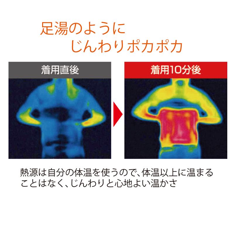 人体から発生する熱エネルギーをカラダに輻射し、血行を促進します。
