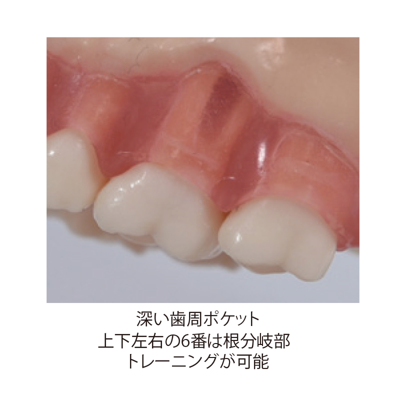 深い歯周ポケット上下左右の6番は根分岐部のトレーニングが可能