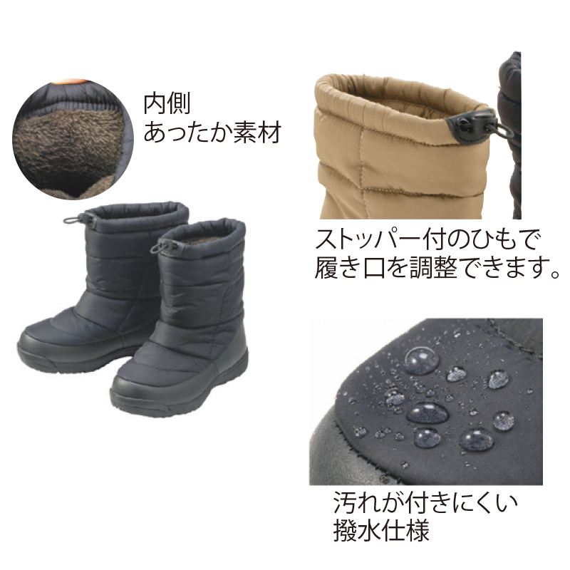 スパイクが不要の際は閉じて普段使い可能寒さや水濡れに強い防寒・防水仕様