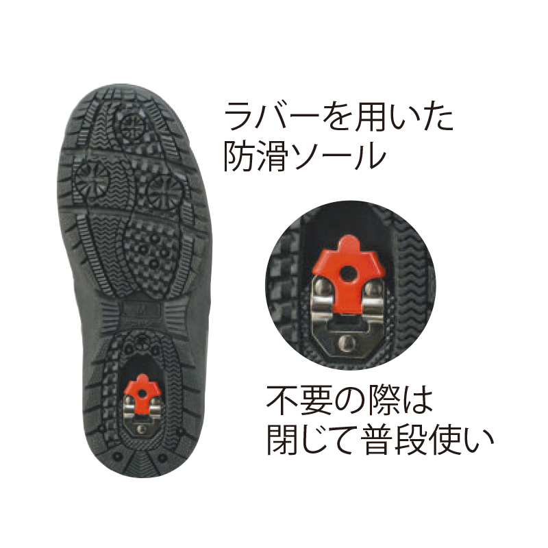スパイクが不要の際は閉じて普段使い可能寒さや水濡れに強い防寒・防水仕様