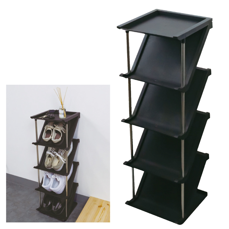 靴の斜め収納で玄関スッキリ!2台あれば連結が可能