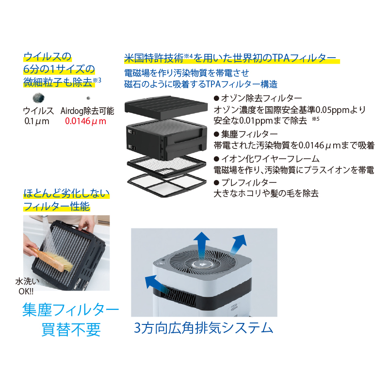 診療・技工時の粉じん対策にも有効 電源:AC100~240V 50/60Hz米シリコンバレーで開発※1された「世界最強レベル」と話題の空気清浄機。