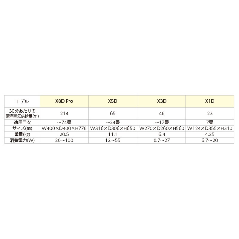 ※X5sを用いた試験結果です。空気清浄能力についてX5DはX5sと同等となります。