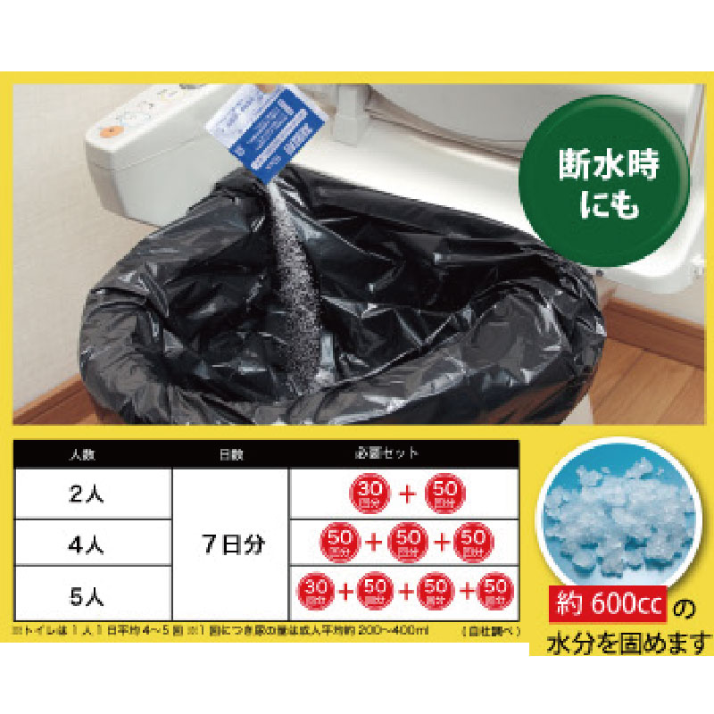 約600ccの水分を固めます。●材質:(汚物袋)ポリエチレン、(凝固剤)高分子ポリマー