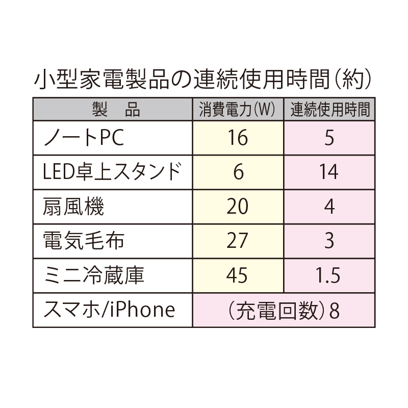 停電でも屋外でも、携帯電話・PC充電+小型家電も動作可能