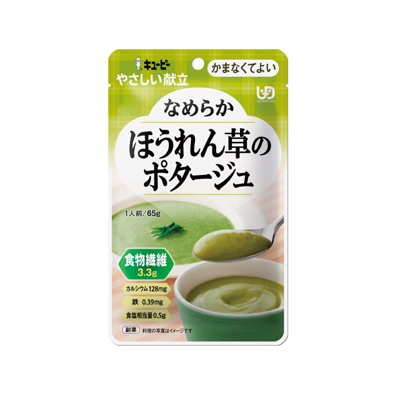 ほうれん草にじゃがいもととうもろこしを加え、なめらかに裏ごししました。バターが香る、食べやすいポタージュです。