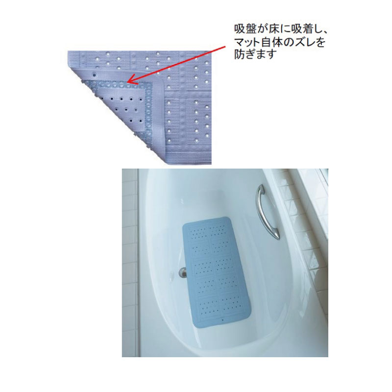裏面全体に並べられた吸盤が床面にぴったり吸着するのでマット全体がズレたり、浴槽で浮いてしまうのを防げます。