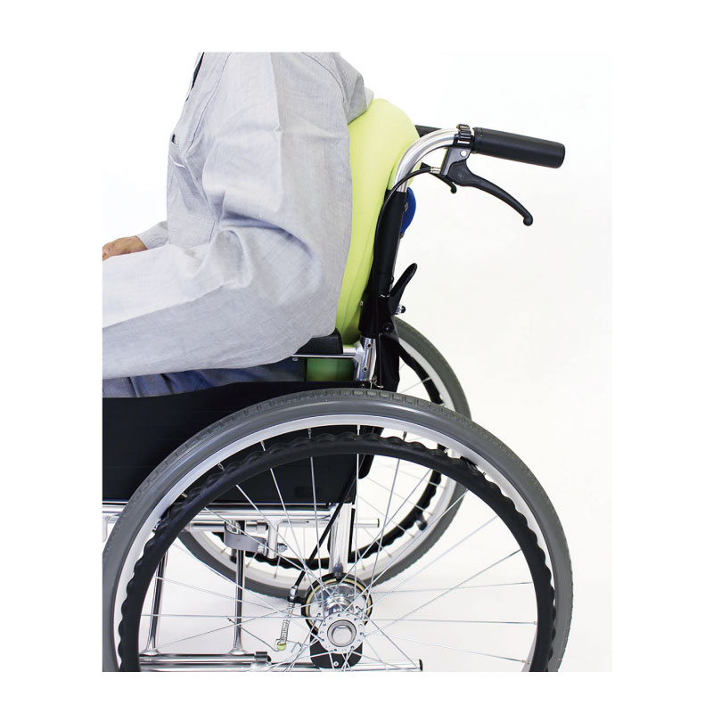 背骨のS字形状をしっかり支え、車イスや椅子でも無理なく正しい姿勢を保ちます。商品詳細