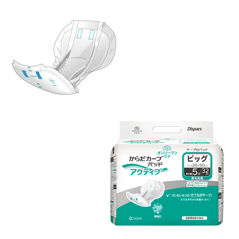 紙パンツに好適!4つのたてながテープでズレずに簡単装着。