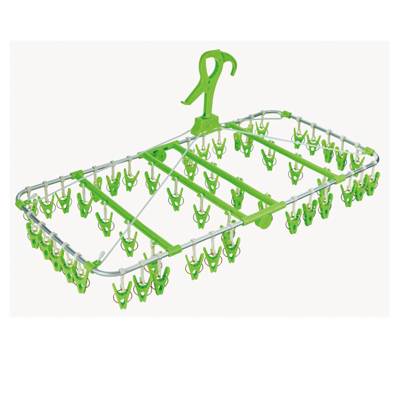 ピンチが自由に動くので洗濯物のサイズに合わせられます。部屋干しにも便利な鴨居フック付き。