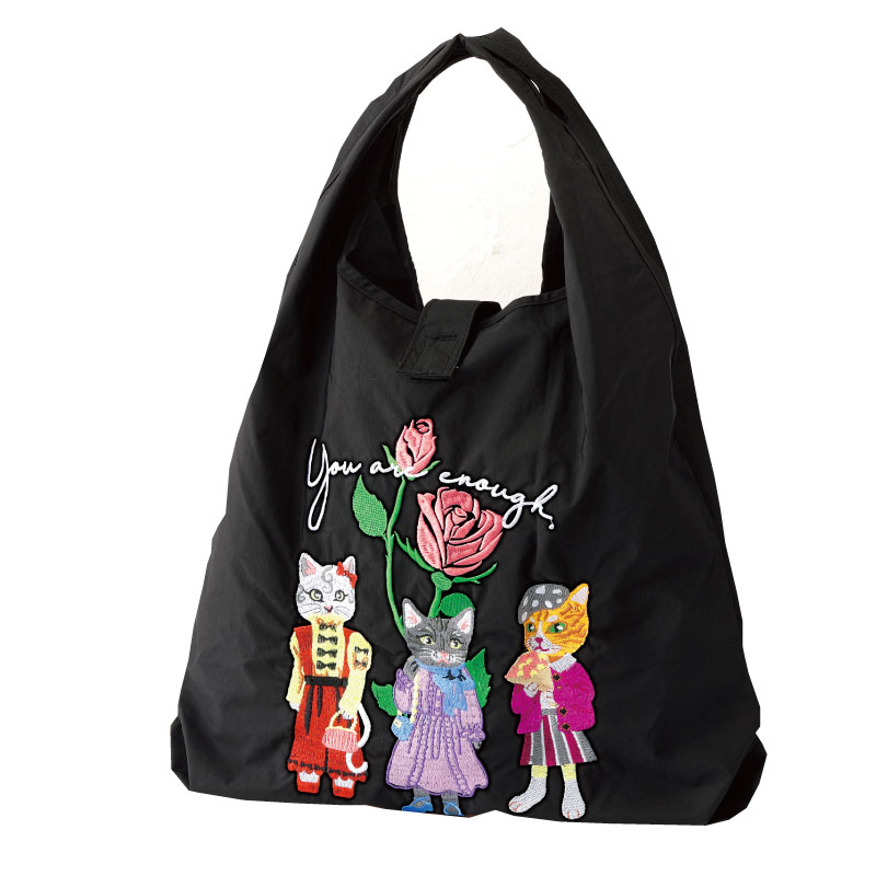 仲良し猫ちゃん刺繍バッグ ブラック 商品ID:805806854 |
