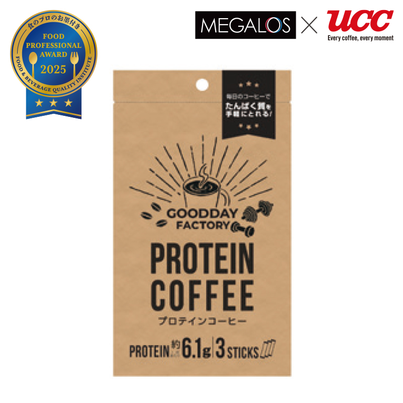 UCCコーヒー鑑定士監修のインスタントタイプのプロテイン入りコーヒー。1杯でたまご約1個分のたんぱく質を補うことができます。