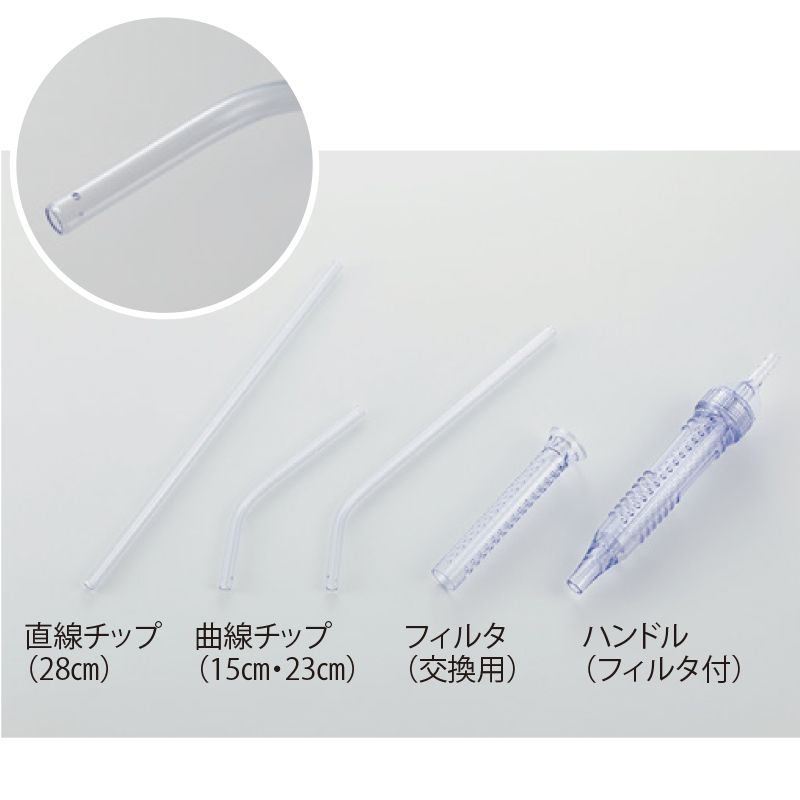 | 付属品・セット内容 | ハンドル(フィルタ付)1個、フィルタ(交換用)1個、吸引チップ各1個(直線チップ28cm、曲線チップ15cm、23cm) |