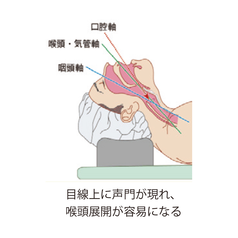【スニッフィングポジションの追求】安定した頭頚部の固定以外に、気管挿管がしやすい形状を追求し、