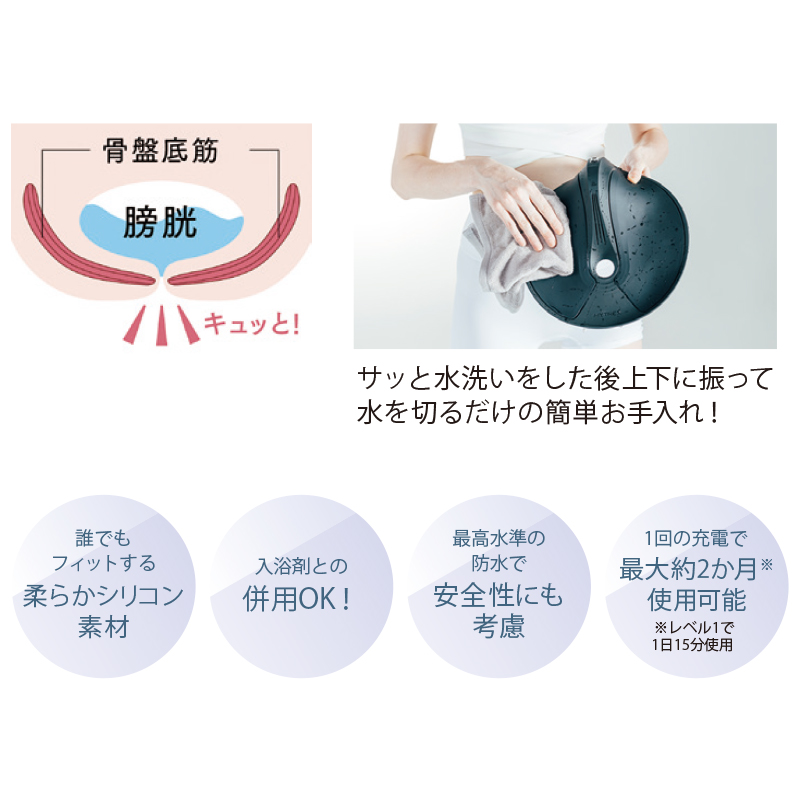 骨盤底筋をしっかり刺激し、簡単にトレーニングします。