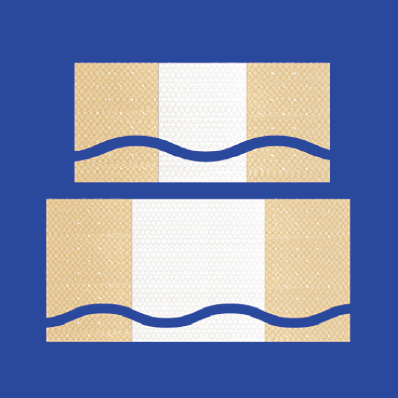 材質 | 塩化ビニル粘着テープ、アクリル系粘着剤、ポリオレフィンネット付不織布パッド |