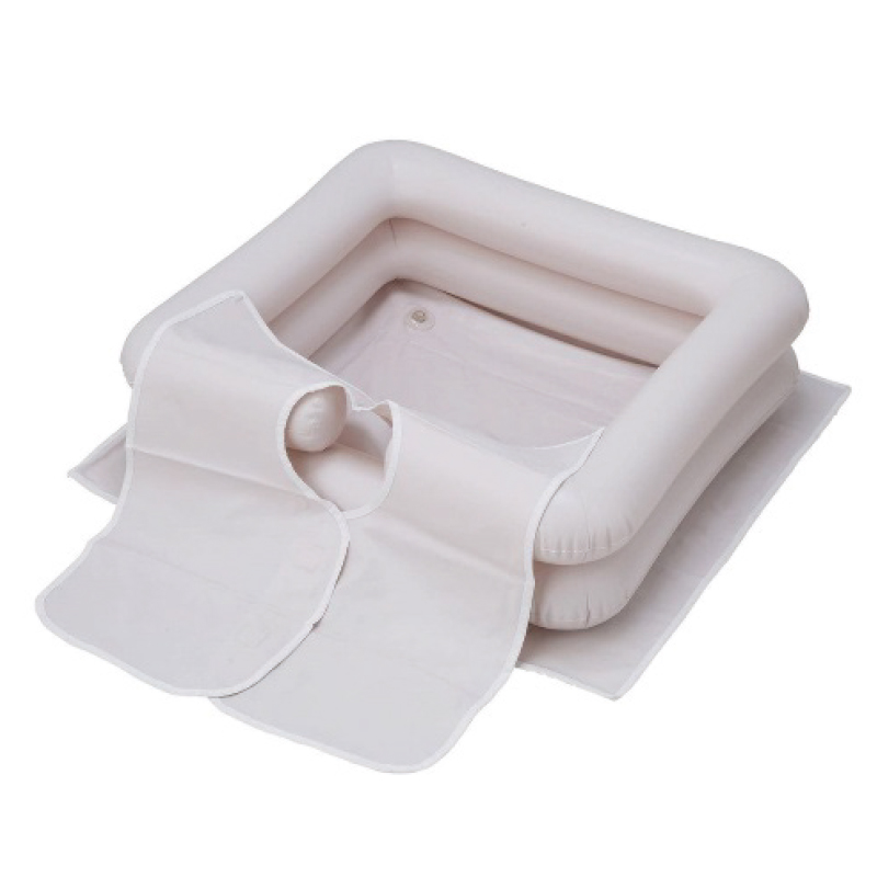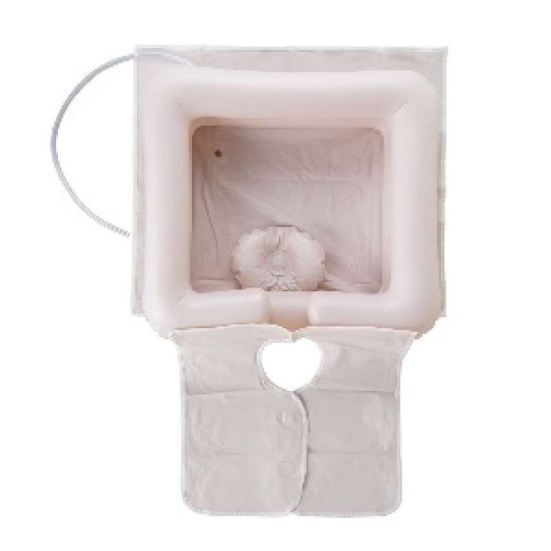 洗髪器本体にケープ・防水シートを付属した便利なセットです。持ち運びに便利な収納バッグ付。