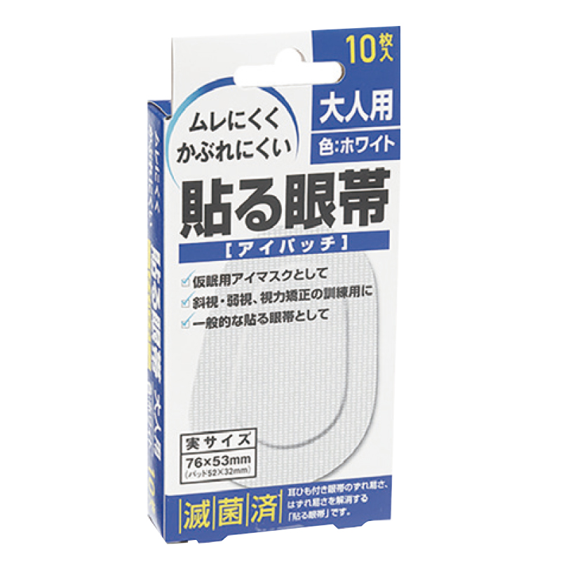 耳ひも付き眼帯のずれ易さ、はずれ易さを解消する「貼る眼帯」です。●仮眠用アイマスクとして