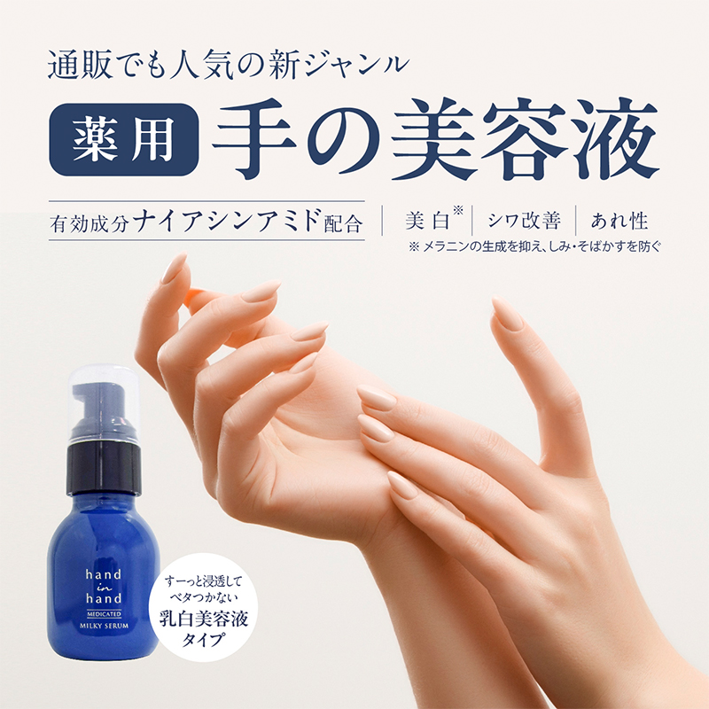 顔と同じく、必要なのは油分の前のうるおい補給有効成分ナイアシンアミドが、手肌のシワ改善・美白・肌荒れ防止に