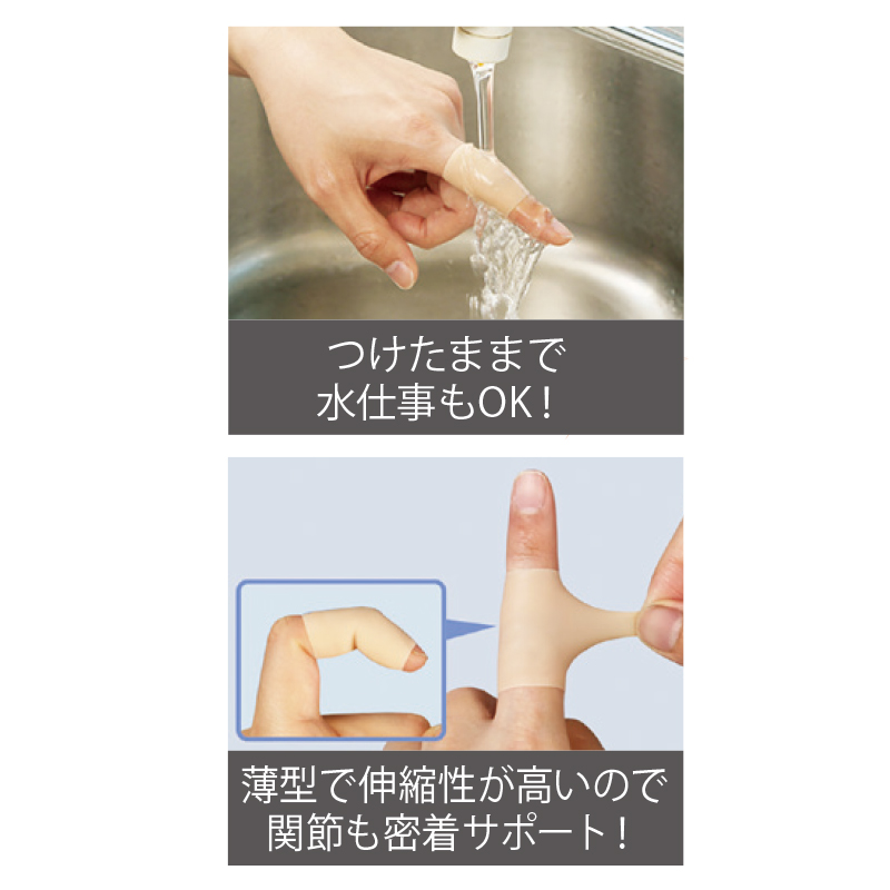 水仕事などで関節や爪周りがガサガサしてツライ人に。伸縮性の高いゲル素材が指を包み込みながら保湿ガード。