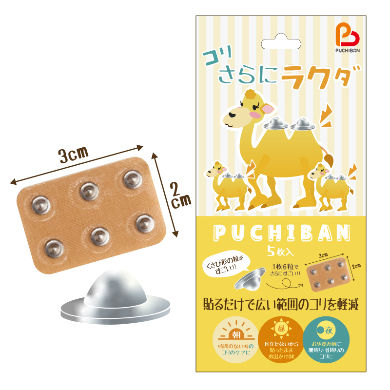貼っている間は効果が持続!※約12時間程度でお剥がしください。独自設計の形状で指圧のような気持ちよさ