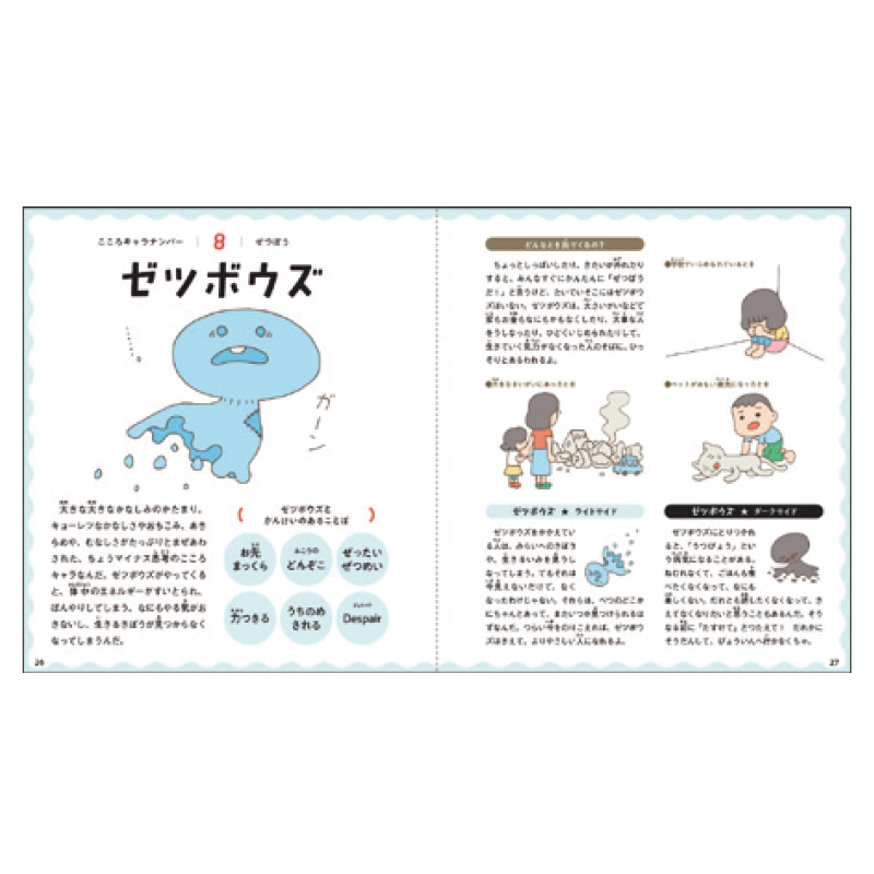 幼児期~学齢期のおもな28の感情をすべて楽しいキャラクターにしました。