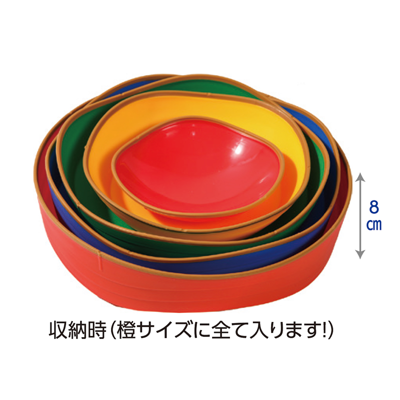 | 商品寸法 | (橙)33×33×8cm、(青)30×30×7cm、(緑)27×27×6cm、(黄)23×23×5cm、(赤)17×17×3cm |