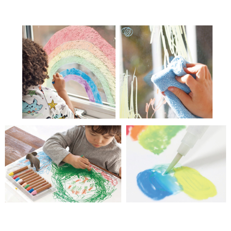 ガラスやホワイトボードなどに書いたものは濡れた布で消すことが出来ます。