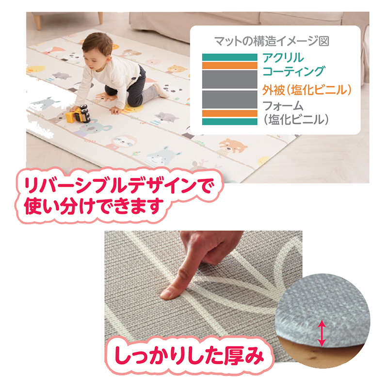 程よい弾力としっかりした厚みがあるためハイハイ時の赤ちゃんの膝にもやさしいマット