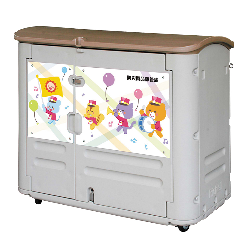 “もしも”に備えた備蓄保管庫はいかがでしょうか?防災備品保管庫の表示が印刷されています
