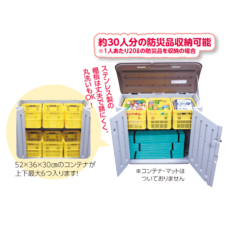 約30人分の防災品収納可能※1人あたり20Lの防災品を収納の場合