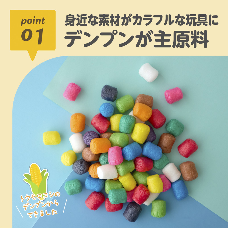 トウモロコシ由来のデンプンから作られています。食品グレードの顔料を使用しているため、安心してお使いいただけます。立体的な作品から平面での作品づくりまで!