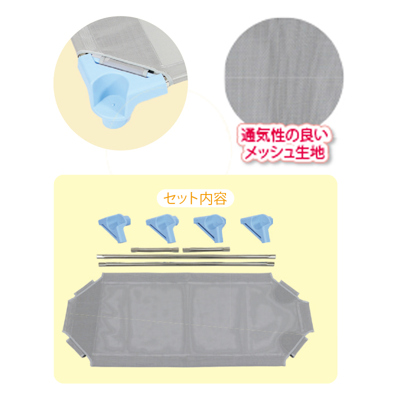 ステンレス製パイプでサビにくく、強度抜群。通気性の良いメッシュ生地