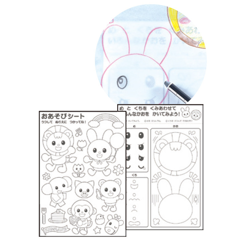 下の絵が透けて見えるため、いろんな絵をうつして描けます。おあそびシート付き
