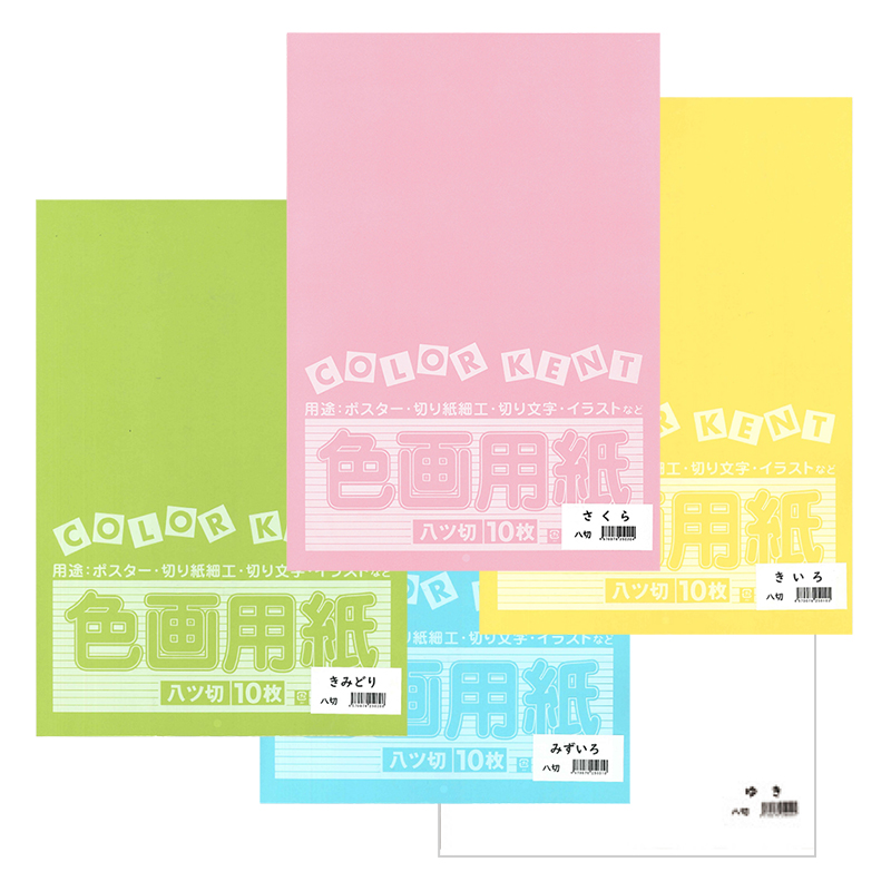 カラー5色(さくら、きいろ、きみどり、みずいろ、ゆき×各10枚入)の装飾・製作向け お得な画用紙セット!商品詳細